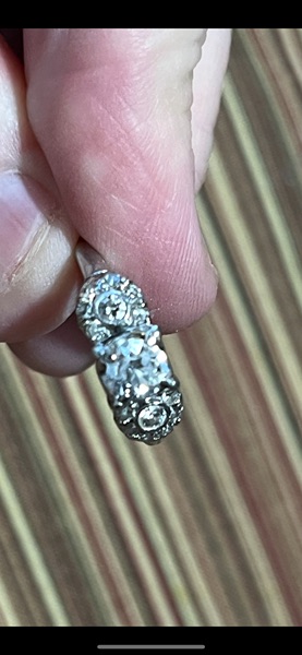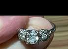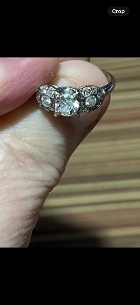 A beautiful woman's antique platinum and diamond ring. The ring a size 7 1/2. It is a very old ring that's been in the family for many years