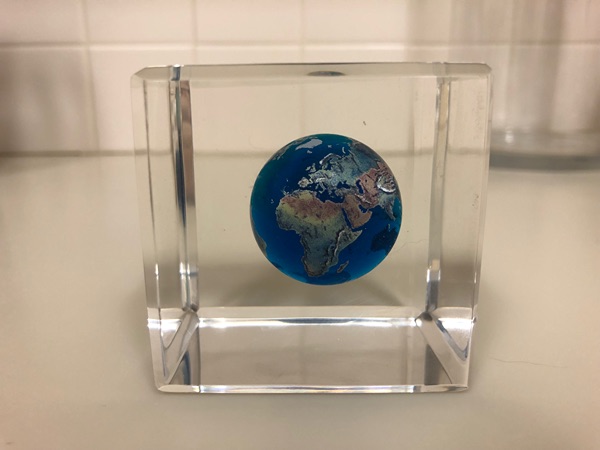 Clear Cube With Earth Model Inside