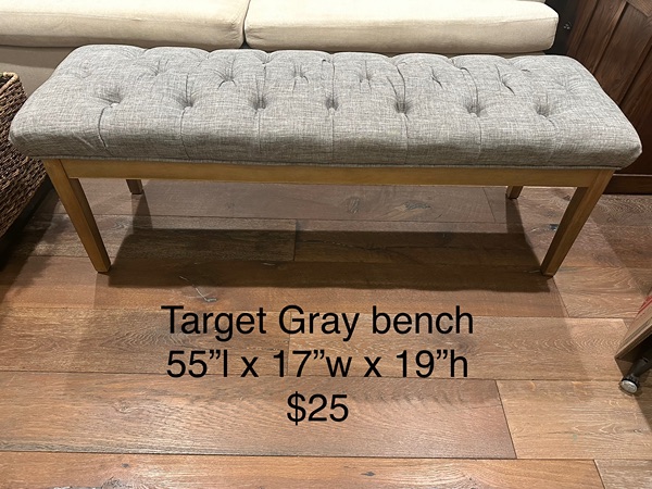 Gray upholstered bench from Target. Good used condition. Text if interested. Pick up in the Woodlands.