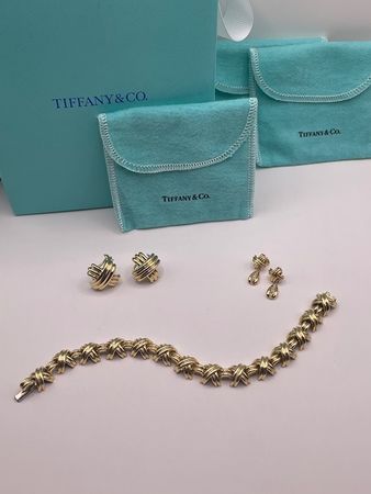 Vintage! Tiffany & Co. Large X Classic Signature Necklace is crafted in luxurious 18k gold, featuring an elegant 'X' motif going all around the bracelet. Hallmarks: T&Co 750, weighing 50.9 grams
