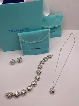 Vintage! Tiffany & Co. Sterling silver “X” design bracelet, earrings, necklace.
