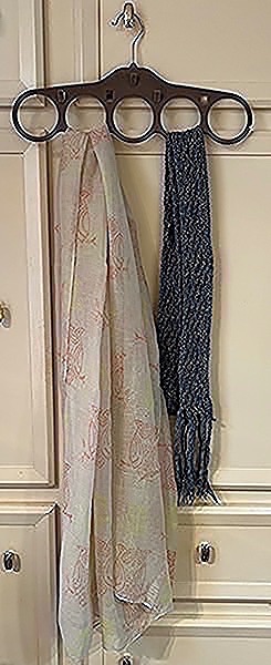 Scarf hanger- to help keep your scarves and belts organized on your closet rod. Holds 5 plus scarves/belts. (Small flaw on right side but only cosmetic)…$12 firm