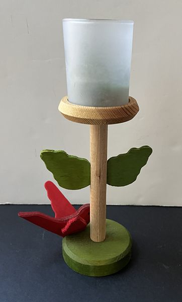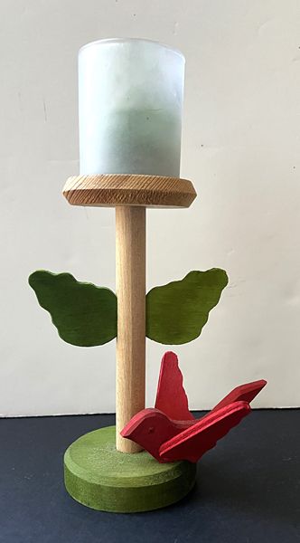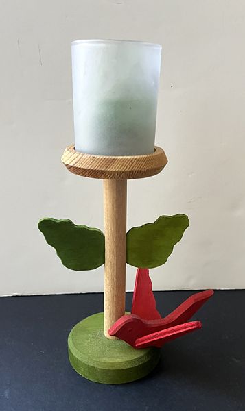This unique wooden stand with a cardinal and leaf accent is topped with a glass votive candle holder. The height is approximately 9-inches tall. See photos as they are part of the description and show the exact item you will receive. Pickj up at Alden Bridge in The Woodlands. Please contact me through this site or text me at 281-782-5014 for a quicker response if interested or have any questions.