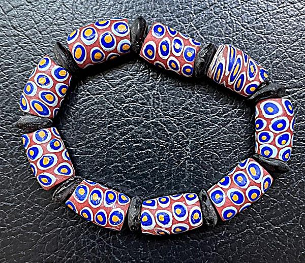 This genuine Krobo African trade beads bracelet is rich in color. The elastic has a lot of stretch to it. See photos as they are part of the description and show the exact item you will receive. Pick up at Alden Bridge in The Woodlands. Please contact me through this site or text me at 281-782-5014 for a quicker response if interested or have any questions.