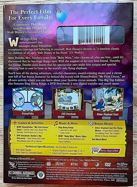 Walt Disney Dumbo – Big Top Edition DVD from 2006 is a special edition release of the beloved animated film. This DVD is a special edition of the classic Disney movie "Dumbo" from 1941. It includes additional features such as a music video, sing-along songs, an interactive experience, and animated short. Slipcover and all original inserts included.  The matching game cards are still sealed and have not been separated. This was only played once and is in brand new condition. See photos as they are part of the description and show the exact item you will receive.  Please contact me through this site or text me at 281-782-5014 for a quicker response if interested or have any questions.