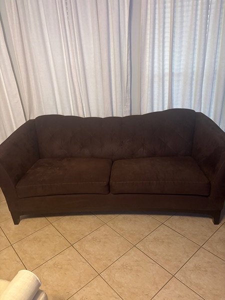 For sale brown microfiber couch and loveseat, gently used. Couch dimensions 86x39x30. Loveseat 69x39x30. Need these gone quickly.