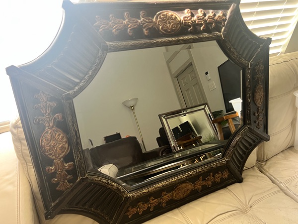 I’m selling this beautiful Howard Elliott wall mirror. It’s a heavy, well-made piece with Old World/Tuscan-style carved details and bronze accents. This isn’t the lightweight décor you find at craft stores — it’s a designer mirror that originally retailed around the $400 range.