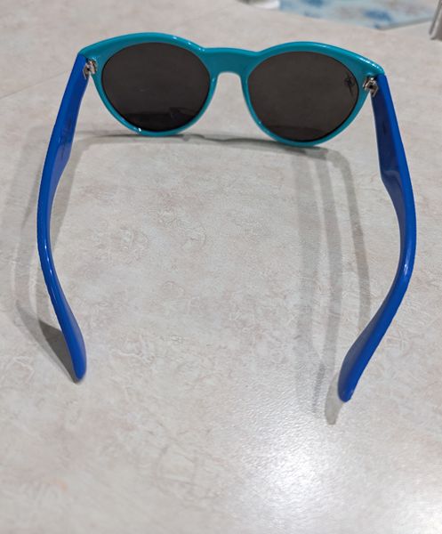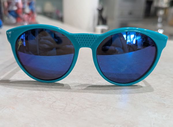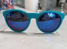 Polarized sunglasses with a bright blue arms and turquoise framing with blue lenses