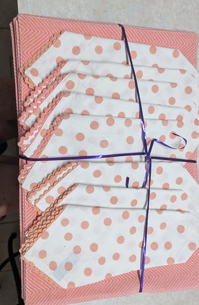 Chervon Look Placemats also could use back for solid color.Paired with fun dot napkins with scalloped edge