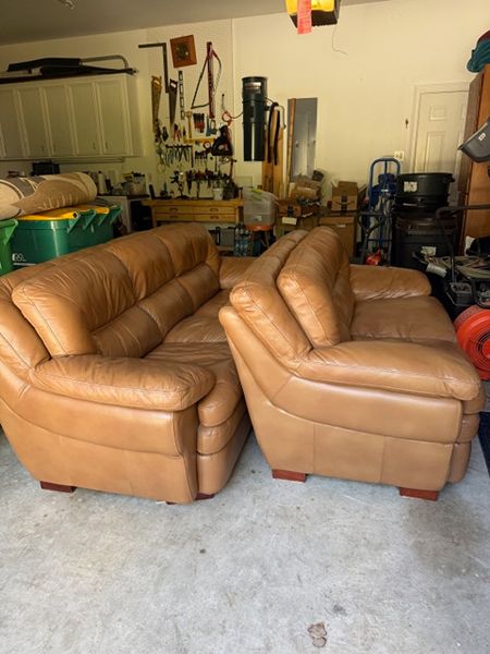 Leather Caramel Sofa and Love Seat