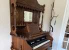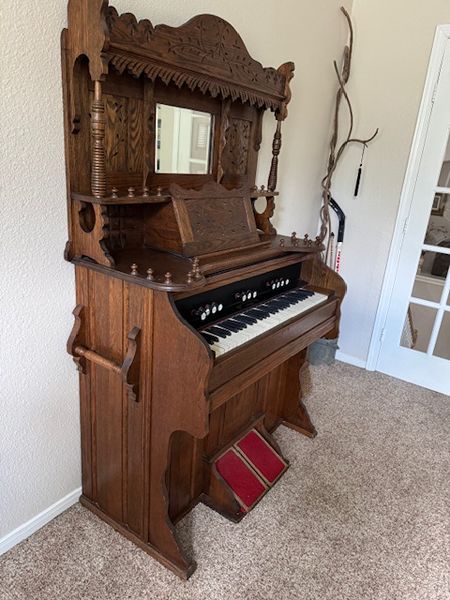 Early 1900's Beckwith Organ Company organ in good condition. Refurbished in the 1980's. We are not organ players but it appears to work properly. 42"W X 34"D X 71"H. The top portion removes for eash transport. Location: Alden Bridge, The Woodlands.