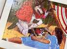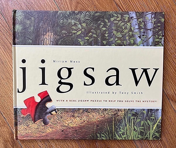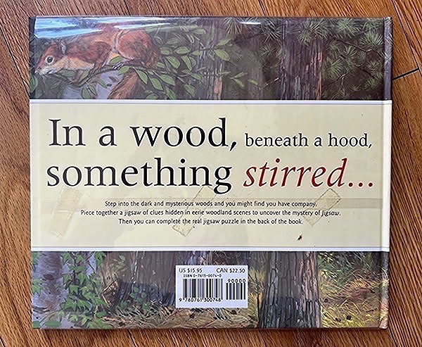 Provides textual clues in rhyme and progessive visual clues in the form of jigsaw puzzle pieces to help the reader determine who is creeping through the woods toward a small figure lying on the beach.