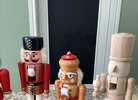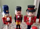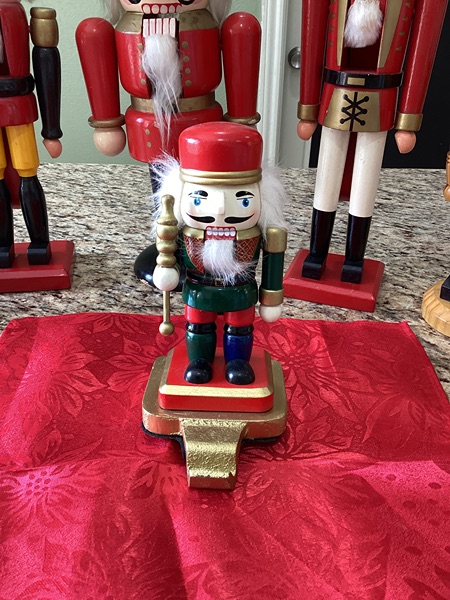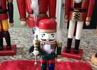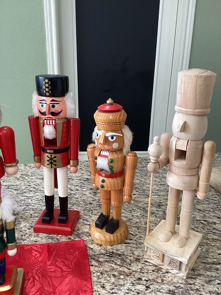 Seven Nut crackers, one is a stocking stuffer, one is a wooden blank that can be painted and the one on the left has no label. All others are normal Nut crackers.