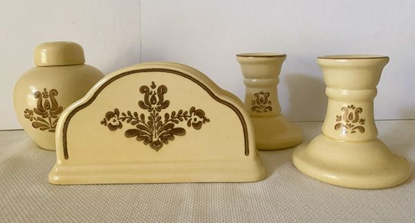 Vtg Pfaltzgraff Village candlestick candle holders pair & napkin holder