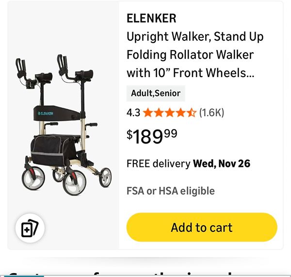 Elenker Upright Walker that's never been used. It's adjustable and can be folded up.