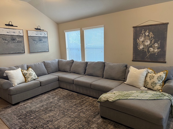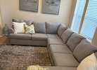 If you’re facing the couch, the chaise part is on the right hand side. Pet friendly home.