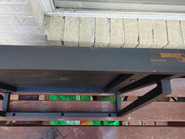 The original and still one of the best shelves for springy floors, In good condition, no scratches on wood shelf or steel tubing.