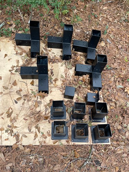 12 foot long metal supports and brackets for gazebo or awning. Tote contains trim, harware and miscellaneous hardware.