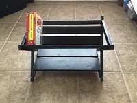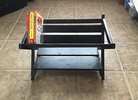 A unique piece of furniture! This is a black Book Cradle that easily displays your book titles for quick reference. Great for bedside!
