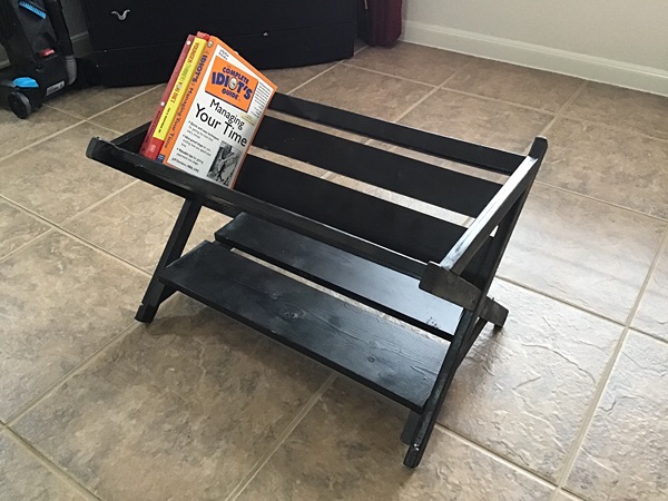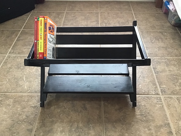 A unique piece of furniture! This is a black Book Cradle that displays your book titles for easy reference. Great for bedside! Would also make a great manger for Baby Jesus during the Christmas holiday season!