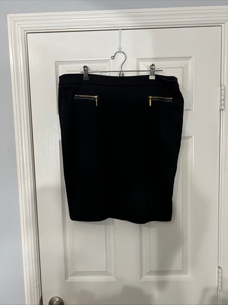 Timeless wear to work career pencil skirt. Pair with so many tops and blouses. Dana Buchman Size 14 Stretch 2 front zip pockets. Lined. Hits just Above knees. Zips in the back or Pull on . Polyester/rayon/spandex. Machine wash gentle cold.