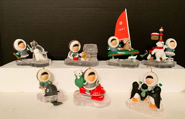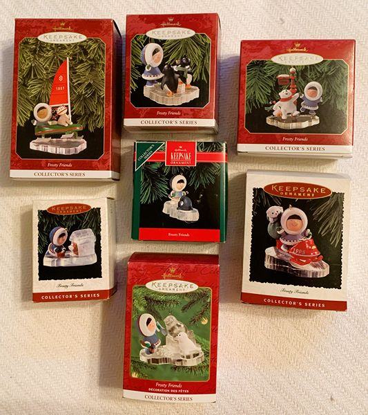 Hallmark Frosty Friends Christmas Ornaments lot 7 ’92 – ‘00 Series Boxes