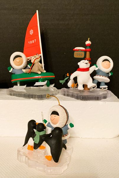 Hallmark started making Frosty ornaments in 1980 with the release of the “Frosty Friends” series. The series features Frosty the Eskimo and his animal friends doing fun things in the North Pole. The Frosty Friends series is the longest running Hallmark series; in 2023, the 44th ornament in the series is being sold.
