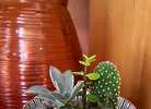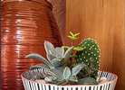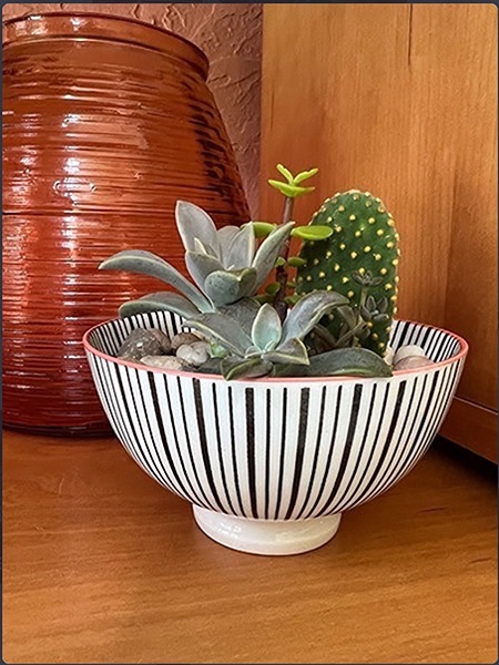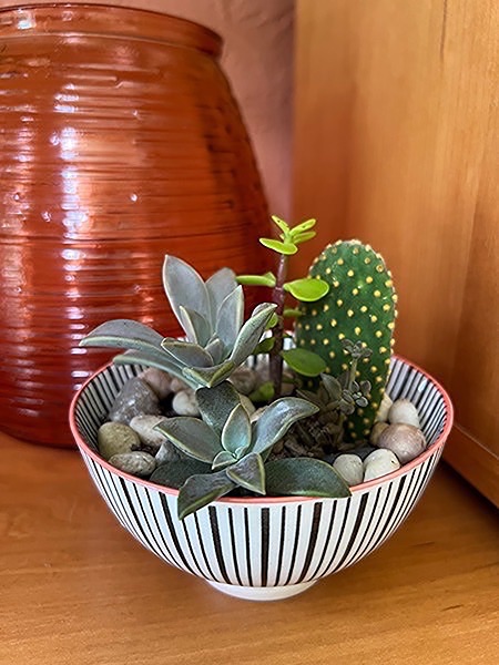 Beautiful live, succulents and cactus arrangement in a decorative striped ceramic bowl...$18 firm