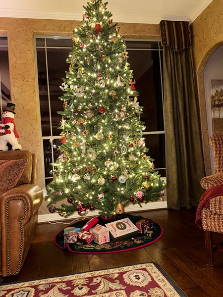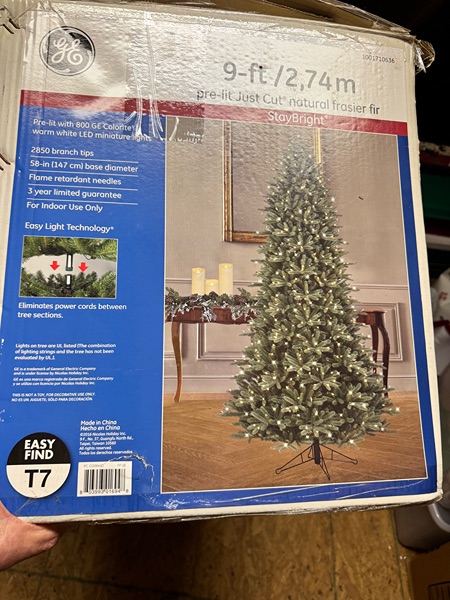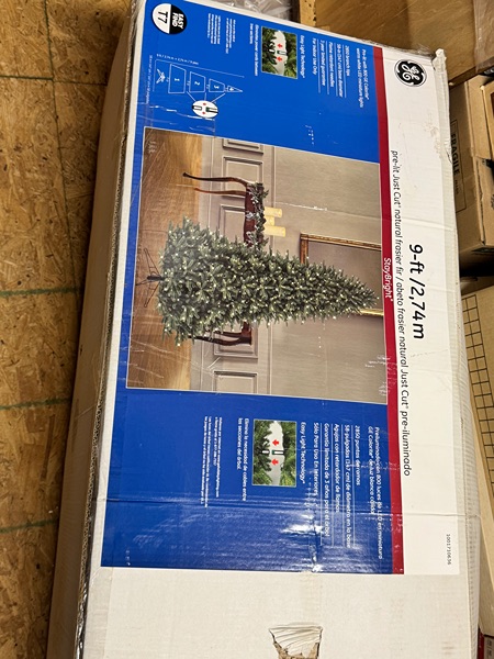 Beautiful 9' lighted Frasier fir Christmas tree. Original $250+ cost and like new condition. The ornaments shown are not included.