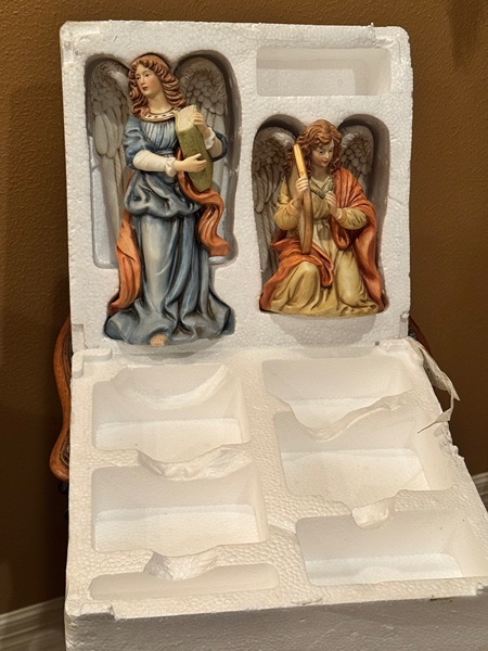Beautiful hand painted porcelan Angel set. Like new in box.