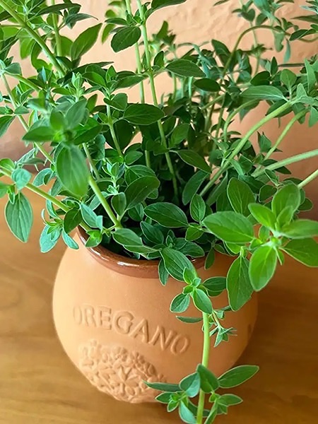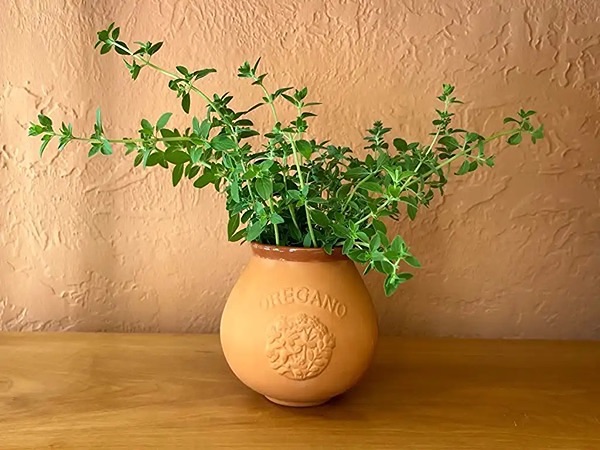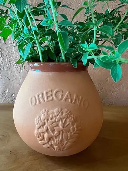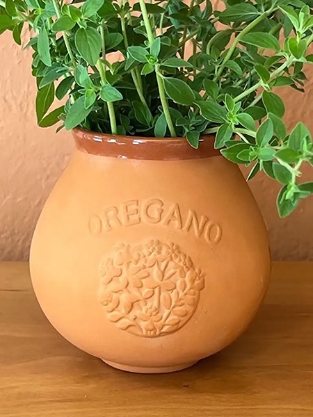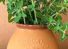 Healthy oregano plant cuttings (in water) in a decorative terracotta pot (approx. 5” x 5”) that reads “oregano”…$10 firm