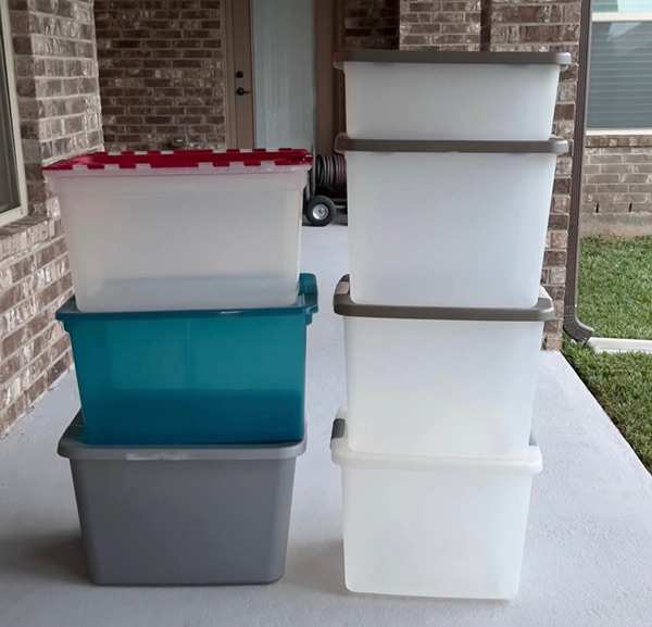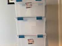 7 great Storage bins.  A variety of sizes & color, most are Sterlite & 1 is The Container store.  All in good condition.