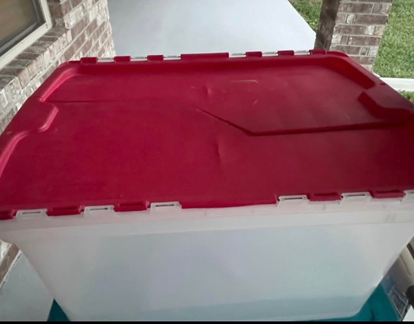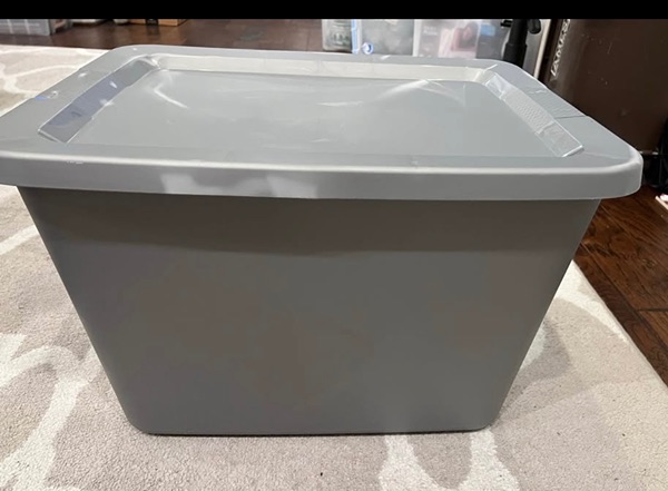 Bronze top (3)- 18 1/2" L x 14 3/4" W x 14 1/4" H, clasp closure (Sterilite)