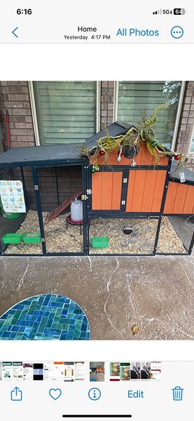 Spacious chicken coop with capacity of 6 hens. Tractor Supply Producer's Pride valued at 399.00. Purchased in March.
