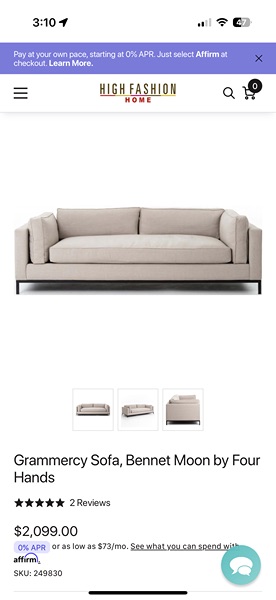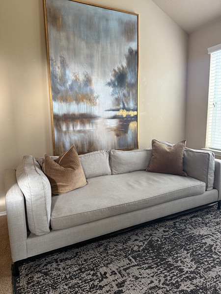 Gorgeous High Fashion Home “Four Hands” sofa is in excellent condition. Just been steam cleaned & fully washed all covers. No rips or stains.