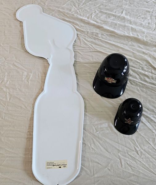 This authentic Anheuser-Busch metal display sign was produced September 24, 1990 by Signet Graphic Products and has provenance label on the back of sign. Measures 34"L x 9.5"W and is in excellent condition.(Astro snack caps are not available.) Price is reduced at $20 - cash only. If interested, text or call 281-825-9606. Thanks.