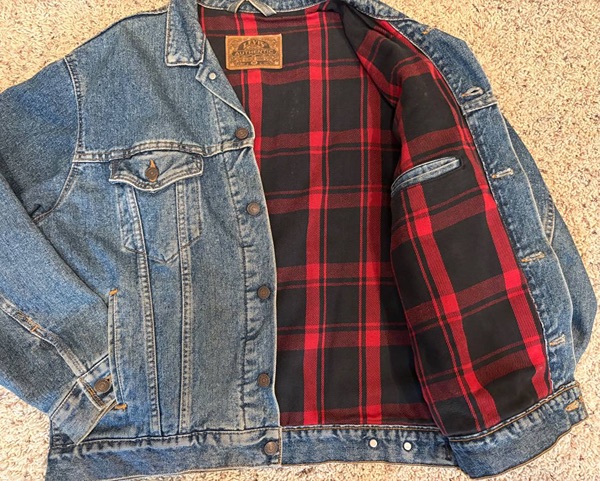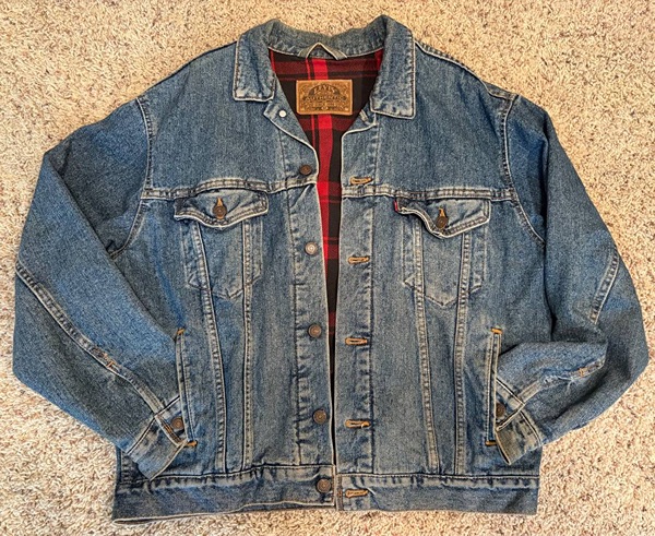 Authentic Levi's denim jacket with plaid lining. In very good, clean condition. Size medium. From a pet-free, smoke-free closet.