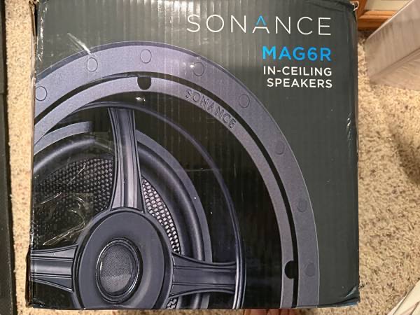 Two Sonage In-Ceiling speakers. All details are on box in photo. Make an offer and your donation will go to charity. Please leave a number where you can be reached to arrange pick up. I'll delete post when sold.