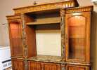 Stunning Elegant Wooden Entertainment Center, Beautifully hand carved with lateral glass curio cabinets . Approximate dimensions Height 87" Wide 105" (Expandable with the extensions included) Deep 24".  The side cabinets are joined by a screwed shelf. Free of smoke or pet odor, Overall, it's a piece of furniture in excellent condition with tiny, almost imperceptible aesthetic details typical of any used piece of furniture.