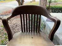 Very sturdy. Quality wood. Seat covering has a small split. Asking $5.00