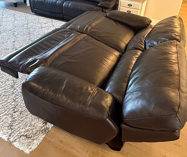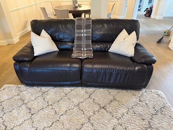 Super comfortable couch in dark brown. Real leather, top grain leather purchased from Macy's. I have a second one if you want matching media room couches... creekside.