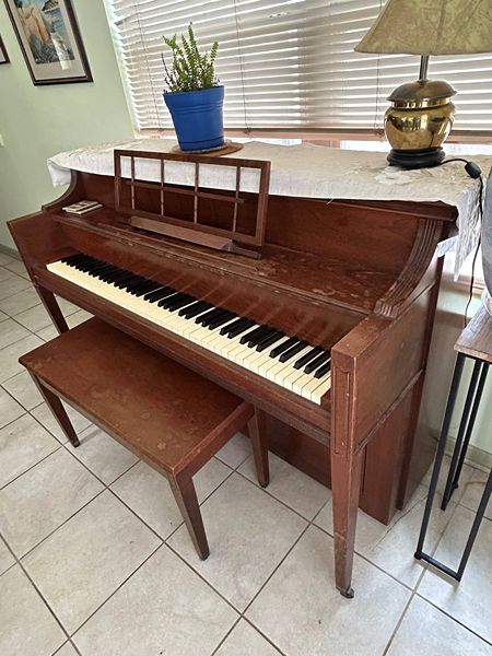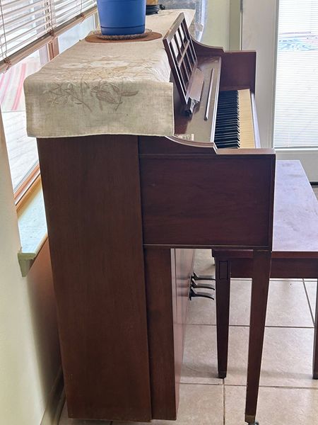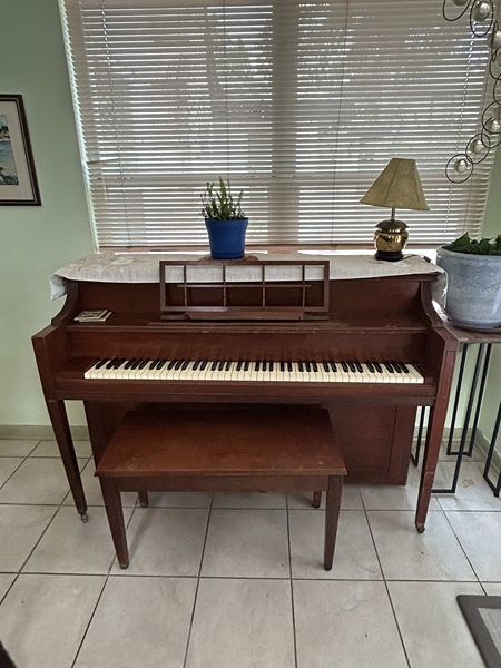 Stan up piano for sale. Needs some work, tuning, maybe some polish, but still plays. Good for having so your kids can learn how to play. If interested, will need the right equipment to move it out.
