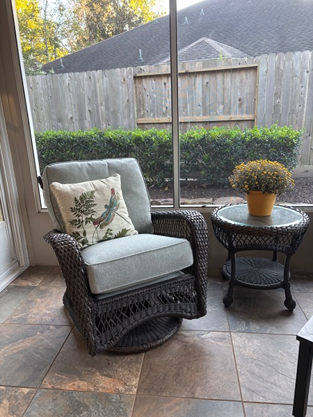 Outdoor patio set in excellent condition two rockers and the bench, coffee table and end table. Furniture has been in a screened-in covered patio always. $700 or best offer.