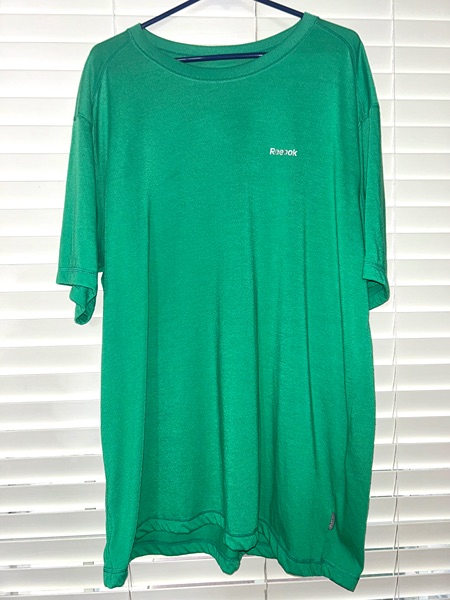 Men's size 2XL Reebok activewear short sleeve t-shirt. Color is parrot green, material is 100% polyester. Minor wear but no holes. Overall good used condition from smoke free home. $4
