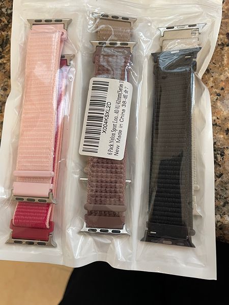 6 solo loop bands for Apple watches--pink, dark ri=ose, brown, beige, black, off white