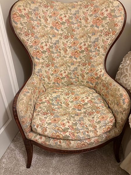 French-Style Victorian Antique Wingback Chair
