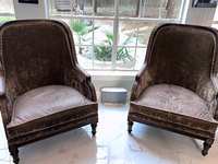 French-style Victorian or early 20th-century reproduction wingback with: