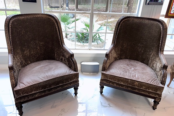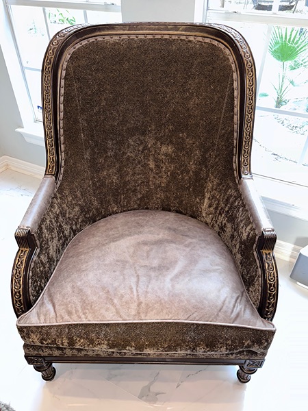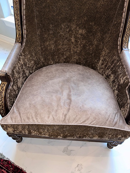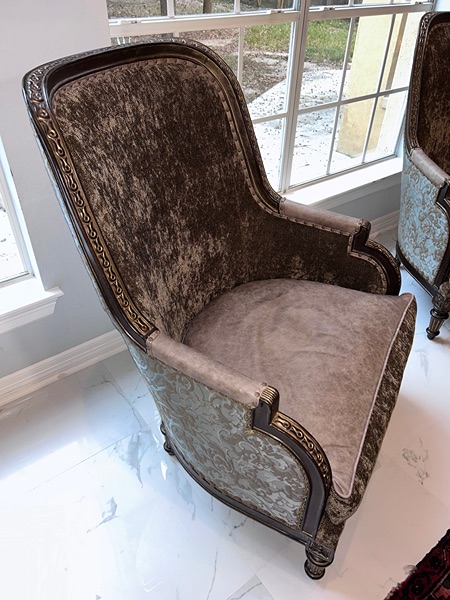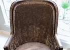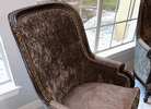 Pair of Louis XV style armchair with a carved wood frame and leopard velvet & reversible leather upholstery accent oversized chairs