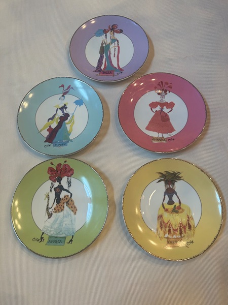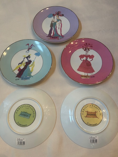 Set of 5, 8" Christian Lacroix china plates. 5 Continent Design. Perfect condition, &25.00