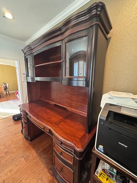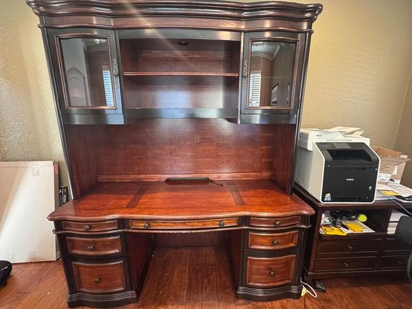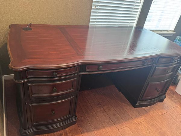 We are selling these 2 Solid Wood Executive Desks as a set. One has the attachment to put on top of the desk (as you can see in the pictures). One has a few scratches here and there, and the other one is in excellent conditions. You will need to pick them up - we are in Harpers Landing, in The Woodlands TX. Let me know if you have any questions.